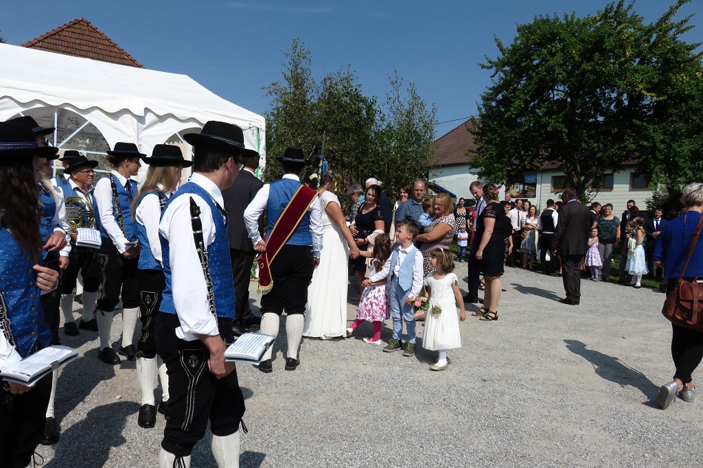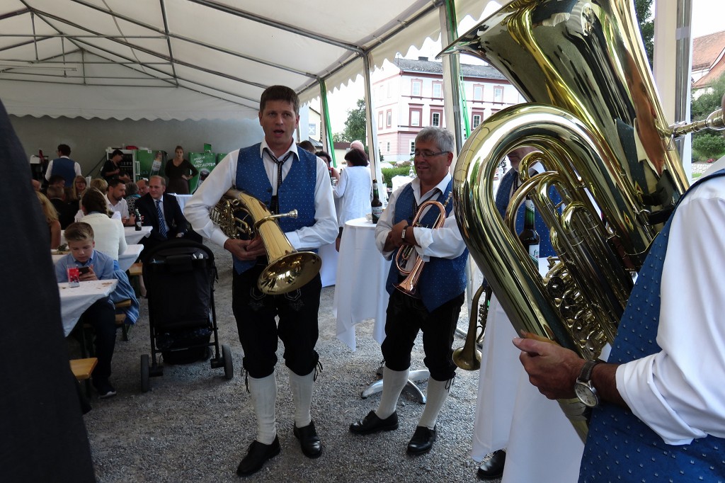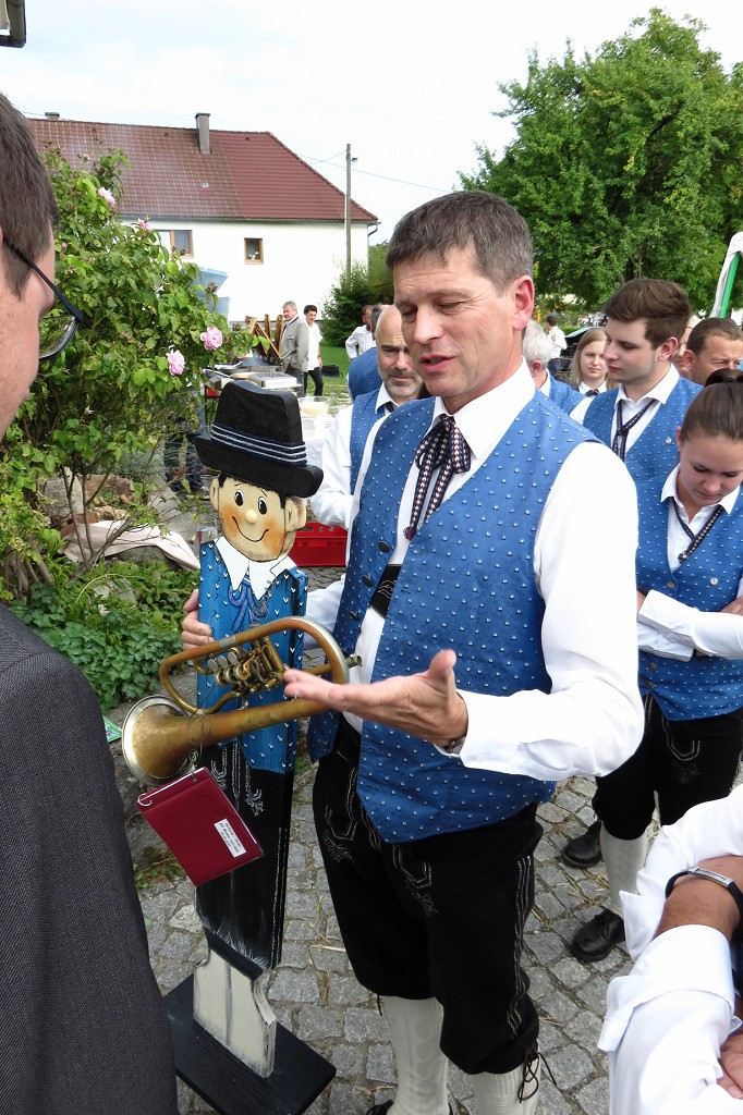 Anschliessend wurde hinter dem Pfarrheim im Freien ausgelassen gefeiert. Für die musikalische Umrahmung sorgte selbstverständlich der Musikverein.