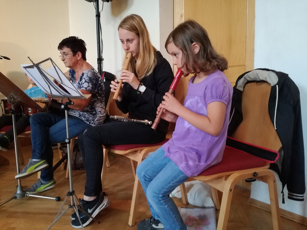Am 21.07.2017 fand auch heuer wieder die Ferienpassaktion der musikalischen Früherziehung “Klangsters” statt. 22 Kinder nahmen mit ihren Eltern an diesem lustigen Nachmittag teil. Im Rahmen einer Instrumentenvorstellung hatten die Kinder die Möglichkeit sich an einigen Instrumenten zu versuchen, was auch gerne genutzt wurde. Danach folgten noch eine musikalische Geschichte die gemeinsam mit dem Klangsters-Team gesungen wurde. Zum Abschluss und zur Stärkung zwischendurch gab es Kaffee und Kuchen für alle.